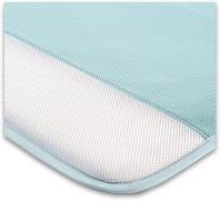 | 上下に不織布を巻いたウレタンフォームをつけたことで、スペーサーの端に身体にあたらず自然な姿勢を保てます。 (実用新案申請中) | マット部は簡単に着脱でき、ご家庭の洗濯機で洗濯できいつでも清潔に保てます。 |
