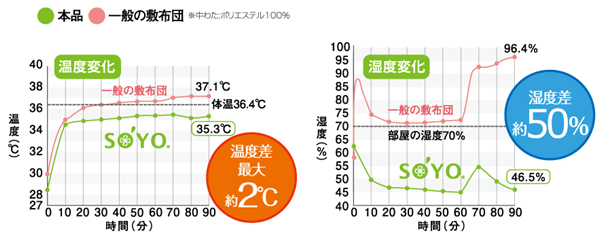 | 「エアコンマット そよ ハーフ」と一般の敷布団※を比較しました。 |