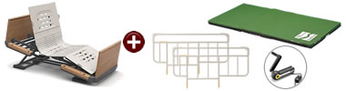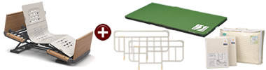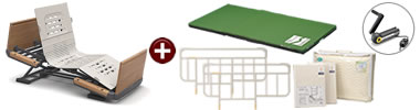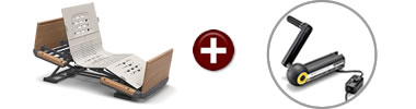 新しい背あげ「ラクリアモーション」を搭載した電動介護用ベッド。暖かな雰囲気の木製ボード。頭側と同じ高さのフットボード。