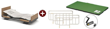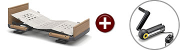 背膝連動の背上げも選べる電動介護用ベッド(1モーション)。暖かな雰囲気の木製ボード。快適に使える6点セット。