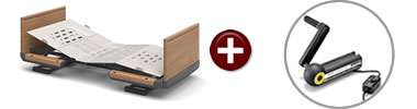 背膝連動も選べる(1モーション)。木製ボード。頭側と同じ高さのフットボード。快適に使える6点セット。スマートハンドル付。