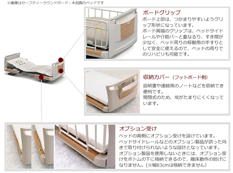 ![]() ![]() 6点セット内容は次の通りです。 ●ベッド本体(セーフティーラウンドボード 木目調 1モーション)+スマートハンドル ●ストレッチスリムマットレス(通気タイプ) ●ベッドサイドレール 2本組(ホワイトアイボリー) ●メーキング 3点セット(マットレスパッド・ボックスシーツ・ピローケース) ※サイドレールは通常ホワイトアイボリー(KS-161Q)をお付けしておりますが、ベージュ(KS-166)に変更も可能ですので、ベージュをご希望の場合は備考欄にご記入下さい。 |