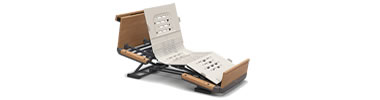 ベッドの背上げの動きに合わせてマットレスの波形ブロックが開くことで、マットレスが伸び、身体のずれを抑えます。 また、大腿部を支えるかためのウレタンフォームが、ベッドの背上げをするとき身体が足側へのずれるのを防ぎます。 |