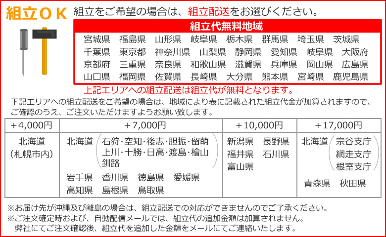 ご案内する金額に送料・組立代・その他オプション等による追加料金等は含まれておりません。