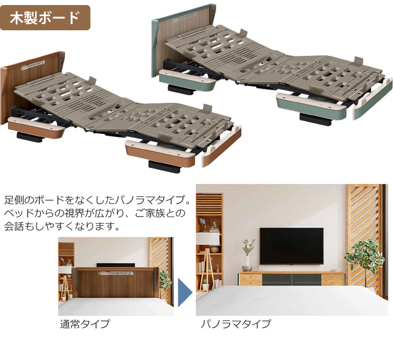 KQ-C632E KQ-C631D KQ-C632EA KQ-C631DA KQ-C612E KQ-C611D KQ-C612EA KQ-C611DA 楽匠フィット 木製ボード パノラマタイプ 3モーション Hタイプ 楽匠Fit 5点セット 商品詳細 介護ベッドのカスタマーネット