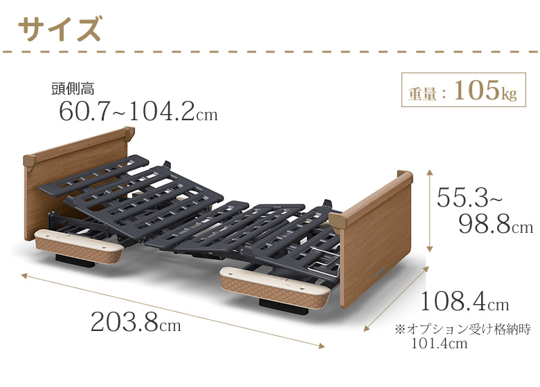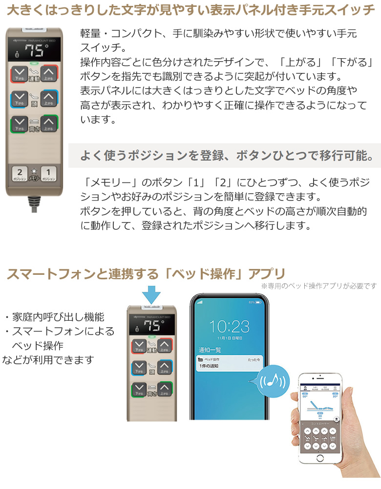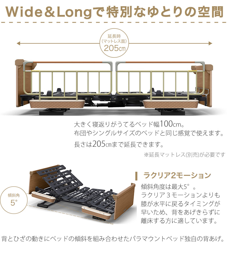 100cm幅のワイドサイズで特別なゆとり空間 より座った姿勢に近い姿勢で起きあがれる