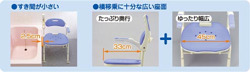 | ■横移乗と体の洗いやすさに配慮したフレーム構造 | |||||||||||||||||||||||||