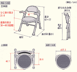 | サイズ: | 幅52×奥行50×高さ67~77cm(座面までの高さ36~46cm) (折りたたみ時:幅52×奥行16×高さ80cm) |