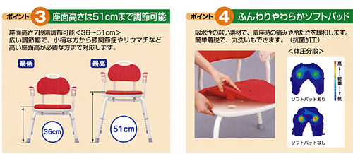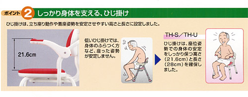 ひじ掛け付シャワーベンチTH-S/TH-U 536-142(TH-S・レッド) 536-144(TH-S・ピンク) 536-140(TH-S・ブルー) 536-152(TH-U・レッド) 536-154(TH-U・ピンク) 536-150(TH-U・ブルー) 商品説明