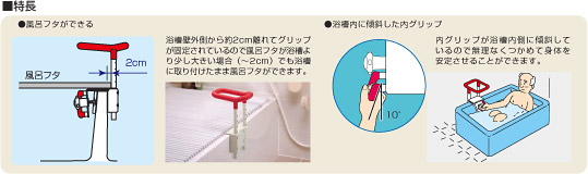 身長や浴槽壁の高さに合わせてグリップ高さを選べます。