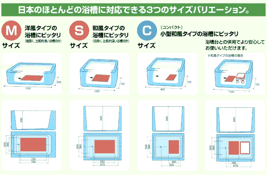 | 吸着滑り止めマットシリーズ 日本の浴槽にぴったり!! 浴槽に合わせて選べる3サイズをご用意。 |