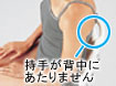 背もたれは背中をしっかりホールドし、しかも持ち手が背中に当たらず痛みを感じにくい形状です。 | |