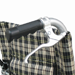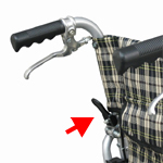 ドラム式介助ブレーキ付きで安心して雨の日でも、坂道が多い場所でもご利用頂けます。 |