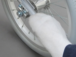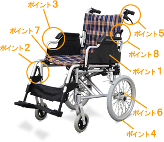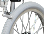 ![]() | 肘掛は前側が切り欠きのデスクタイプになっており車椅子に乗ったままテーブルに入りやすくなっているので、家族と同じテーブルでお食事が出来ます。 | ![]() | タイヤはパンクの心配がないノーパンクタイヤ仕様となっており、面倒くさい空気の補充も必要が無いので、使いたいときにすぐに使えます。 |