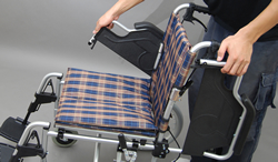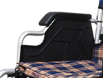 | 左右のアームレストはワンタッチ跳ね上げ式で、ベッドへの移動や、トイレの移動が楽に行え、お一人での移乗はもちろん介護の方の負担も減らせます。 |