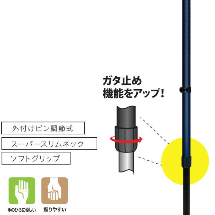 締めてから杖をお使いいただくことでシャフトががっちりと固定され、より快適な歩行をサポート。