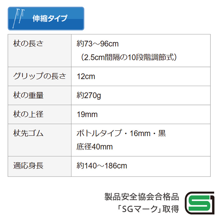 愛杖Eシリーズ 伸縮タイプ 柄 E-252A E-254A E-253A E-251A E-256A E-255A 商品説明