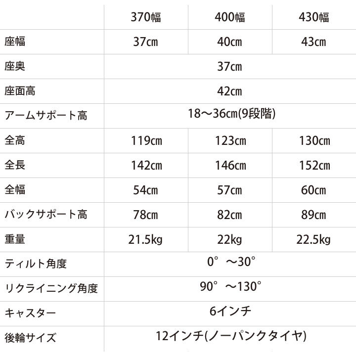 リクライニング角度:90~130 - 規格